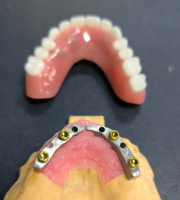 Laboratorium dentystyczne WM China odbudowa pełnego łuku CADCAM tytanowy Ibar umieszczony z lokalizatorem i zdejmowany na protezie