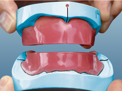 Podczas wytwarzania płyty bazowej może być konieczne zablokowanie przez technika wszelkich podcięć w modelu głównym, aby zapobiec pęknięciom. Może to spowodować, że płyta bazowa będzie lekko luźna podczas przymierzania. W takich przypadkach można zastosować niewielką ilość kleju do protez, aby poprawić stabilność. Po przetworzeniu protezy dopasowanie będzie dokładne.